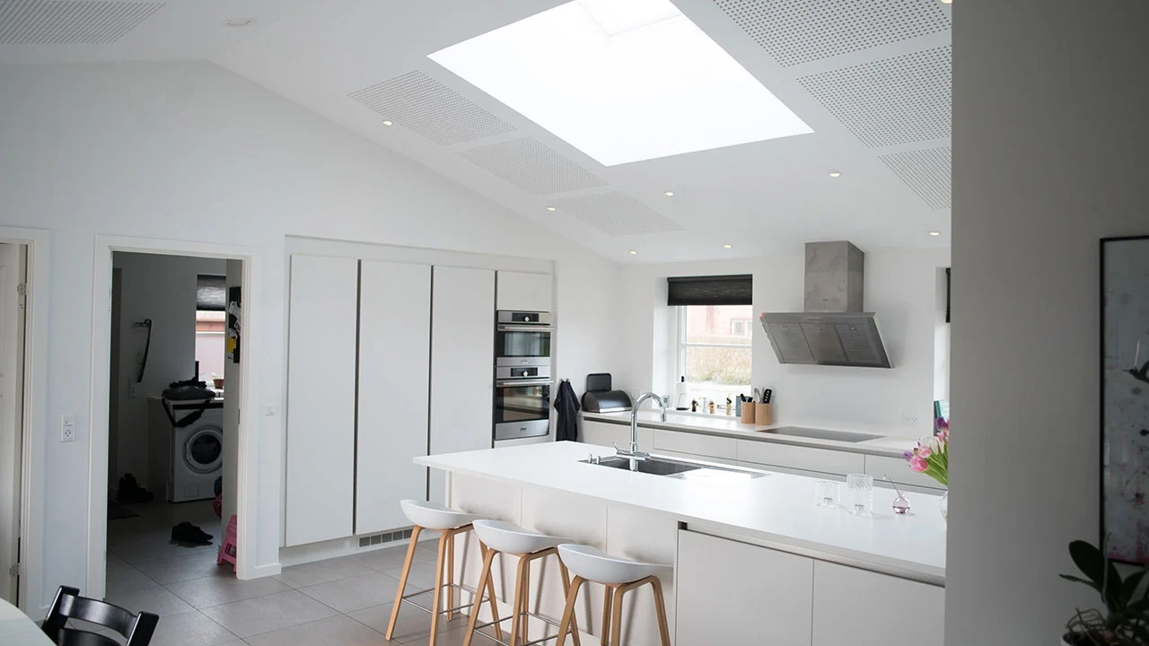 "Vår rådgiver hos HusCompagniet påpekte et viktig poeng om mangelen på lys på nordsiden av huset, og vi har på ingen måte angret på beslutningen. I tillegg til å slippe inn mer dagslys, har det skapt et mye kjøligere rom. Vinduene bryter opp gipstakene og gir rommet mer luft", sier boligeieren og fortsetter.